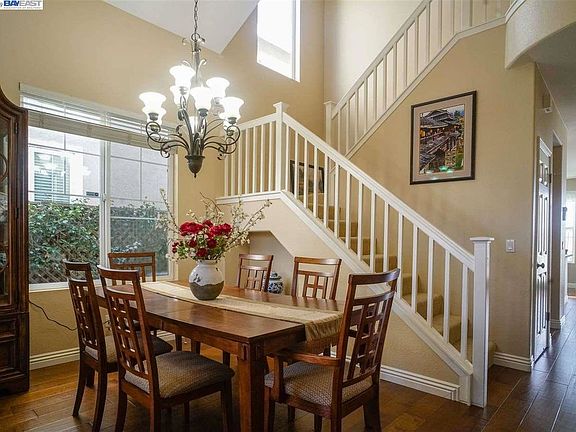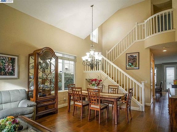 Desirable neighborhood of Stoneridge Square in the top-rated school district. Very close to shopping and easy freeway access. Walk to Mohr Elementary School, community pool, park, trails and premium outlets. Great curb appeal and views of Prairie & Calaveras mountain from the upstairs. No rear neighbor. Popular Ghiradelli Square floor plan. Vaulted ceilings over living room & formal dining room. Large family room with gas burning fireplace and a lot of natural light. Open kitchen with matching white cabinets and granite counter tops/full backsplash. Spacious eat-in-kitchen area. Upstairs landing with a balcony overlooking living room and formal dining. 3 spacious bedrooms upstairs. Master suite with huge walk-in closet, tub, separate shower and dual sink vanity. Jack and Jill bathroom shared by 2 other bedrooms. Rich color hardwood floors throughout downstairs, Berber carpet upstairs, newer air conditioning, beautiful garden with a wide variety of flower plants and a lot more...