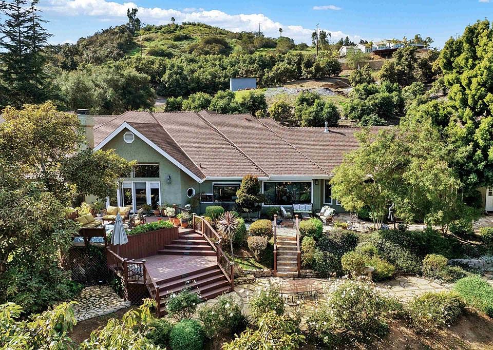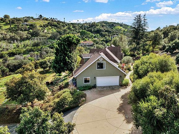 See this gorgeous, storybook home nestled in the hills of Fallbrook. Situated on 1.98 acres of picturesque landscape, this single level boasts 4 bedrooms, 3 baths & a spacious private loft (=5) w/ a bathroom. Spectacular cathedral ceilings welcome you into the living/dining area, while showcasing breathtaking views of rolling hills & mountains. Gorgeous porcelain tile flooring throughout, hardwood flooring in the great room. The primary suite includes walk-in shower, jacuzzi tub, & two custom built, walk-in closets. A gorgeous/recently remodeled kitchen & breakfast room overlook the beautiful flower gardens & valley view. Meander through the lovely grounds which include a wildflower meadow, tri-level deck & various seating areas. Over a dozen avocado trees produce delicious varieties including Haas, to enjoy for about 8 months. An overall serene, natural, park-like setting surrounds this lovely home. Generous lot w/ample space that may allow for a pool and/or ADU, Buyer to verify. Since its purchase in 2020, numerous upgrades (see supplement in docs section) have only enhanced the Daisy Dream House’s beauty and functionality. An oversized 2-car garage provides ample space for vehicles plus hobbies/projects, space for workbench, or exercise equipment. This is a truly magical retreat for those seeking tranquility & luxury amidst nature & splendor.