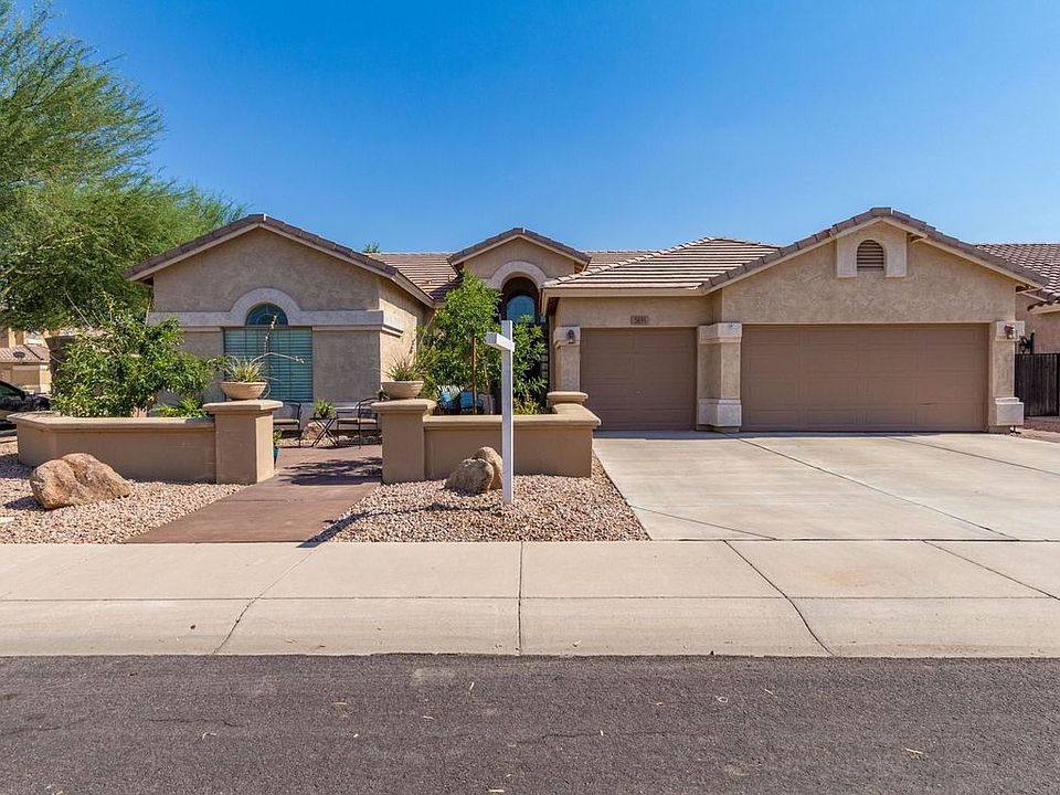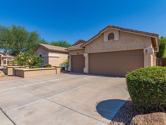 Honey Stop The Car, This Is It! Original owner. Arizona's most popular floorplan. Tiled floors except bedrooms. 10' high ceilings, kitchen has an abundance of cabinets,huge pantry,center island with breakfast bar, Stainless appliances added 2017. Big master with exit to back patio, split vanities, large shower, walk-in closet, and private toilet room. The gorgeous backyard has covered patio, low maintenance pool with in floor cleaning system, waterfall and pool light on remote, and fireplace conversation area. Perfect for entertaining friends & family. Both refrigerators stay. 3 high quality sealed security doors for air flow. Roof inspected and repaired 2019. Newer garage cabinets. Refrigerator plumber for RO system. AIr conditioned garage. Newly upgraded to pvc hard plastic irrigation