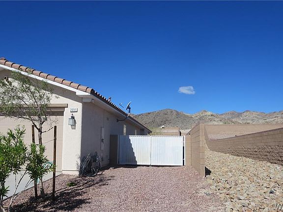 Beautiful Single Level Home with RV Parking in Bilbray Ranch subdivision of Laughlin. 3 bedroom, 2 bath, 2 car garage and RV parking. Beautifully landscaped front and back yard with attached covered patio and fire pit. Block wall fenced in back with partially terraced landscape. New Gas Stove, Water heater, and tiled Master Bedroom floor and bathroom. Whole house water softener included. Mountain view! Must see!