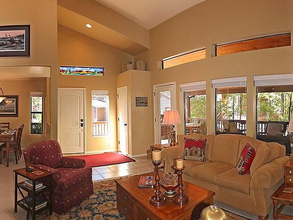 Unbelievable outdoor living space! Not 1 but 2 over-sized decks for your enjoyment. Back deck off master bedroom is 13.7 x 20/2 with an additional irrg shape. Front deck off the living room is 27.10 x 11/6 both decks have been upgraded to trex for lasting quality. Beautiful entry, large great room, living room, dining room, kitchen open with vaulted ceiling and an abundance of windows and gas log fireplace. Master bedroom features a walk-in California closet. Ceiling fans throughout. Mountain Pines also affords the owner the Pinetop Lakes Recreation Center with a pool, exercise facility and lots more! FURNISHINGS ARE AVAILABLE OUTSIDE OF ESCROW BUT WILL NOT BE ADDRESSED IN AN OFFER,