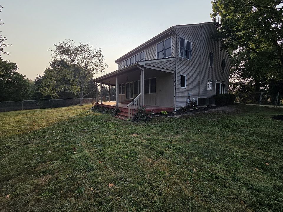 Gorgeous 3-bedroom 2 full bath upgraded house with 2 car garage, partial unfinished basement, fenced in yard with partial wrap around covered deck in the back yard, plenty of windows on 1st and 2nd floor for lighting, sits on a 100-acre lot with a pond on the property you can enjoy fishing or swimming in. Surrounded by beautiful wildflower fields that are a part of the Ohio Department of Natural Resources Nature Preserve. Resident responsible to mow the backyard inside the fenced in area with option to mow surrounding area outside of the backyard fence and use (with the exception of the nature preserve fields) and close by the Little Walnut Creek. Owner allows license to hunt on the property and use of recreational vehicles to be driven on the land. Home is equipped with two furnaces, one in the basement for the lower level and one in the attic for the upper level. First level offers a fully equipped large, open and spacious kitchen with plenty of cabinets for storage middle island, extra pantry closet under stairs with basement access, oak cabinets, white granite counter tops, white porcelain sink with garbage disposal, white appliances include refrigerator, range and dishwasher, dining area and oak wood plank flooring, inlayed lighting and hanging light fixture over dining area. Large, open and spacious living area with wrap around windows overlooking the deck, back-yard and pond, two patio sliding glass door access points, wood burning stove and oak wood plank flooring, inlayed lighting and two ceiling fans. Full bath with tub and shower, oak cabinet with white sinktop, light fixture, extra cabinets for linens and storage, tile flooring. Second level is carpeted stairs, hallway and bedrooms, window at top of stair landing, large open and spacious master bedroom with wrap around windows, large walk in closet and ceiling fan. 2nd bedroom open and spacious with two windows, double door closet and ceiling fan. 3rd bedroom open and spacious, one window, double door closet and extra smaller closet with ceiling fan. Full bath with tub and shower, maple cabinets, white sinktop, light fixture, window, linen closet with mirrored door, extra cabinets for linen and storage, tile flooring. In the hallway there is attic access that goes to a finished attic space for additional storage use. Resident responsible for utilities based on usage as follows; Electric and propane through Consolidated Electrical Distributors Water through Del-Co Water Co Inc Sewer, the home is equipped with a Septic Drain Field that is naturally disposed of and there is no monthly service cost to the resident. Residents are responsible to insure only waste and toilet paper are flushed down into the septic. If any foreign objects do get into the septic and repairs are required, the resident will be held responsible to pay for those repairs. There is an annual service done to the Septic that is paid by owner. Trash service is through Local Waste Services that is already setup and billed to the property and resident pays. Automatic lease renewal unless written notice is given thirty (30) days prior to the expiration of this Lease to the Wallace F. Ackley Company by Lessee.