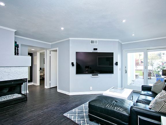 Beautiful 2 Bedroom, 1.25 Bathroom home located in the desirable Hillcrest Village community of Mission Viejo. This modern and bright home offers immense upgrades including wood porcelain tile, crown molding, recessed lighting throughout, new paint, baseboards and newly wired Legrand electrical. The remodeled Kitchen features Samsung stainless steel appliances including refrigerator, new countertops and cabinetry. The open Family Room offers a Carrara Marble glass fireplace, is wired for Bose sound system, and leads to the huge backyard. The stunning backyard is a retreat within the city, featuring unique producing fruit trees including a Fruit Salad tree, Nectar/Plum hybrid, Apple, and Peach tree. An Amazing low maintenance garden design with astroturf and pavers, and a built-in natural gas Glass Fire pit make this incredible outdoor living space perfect for entertaining. The bathrooms include granite countertops and have been upgraded with a new bath, shower tile and cabinetry. The home provides direct access to the attached garage which has been wired for an electric car. Hillcrest Village community features two pools and is conveniently located near The Shops at Mission Viejo. Don't miss this opportunity to own this unique one of a kind property!