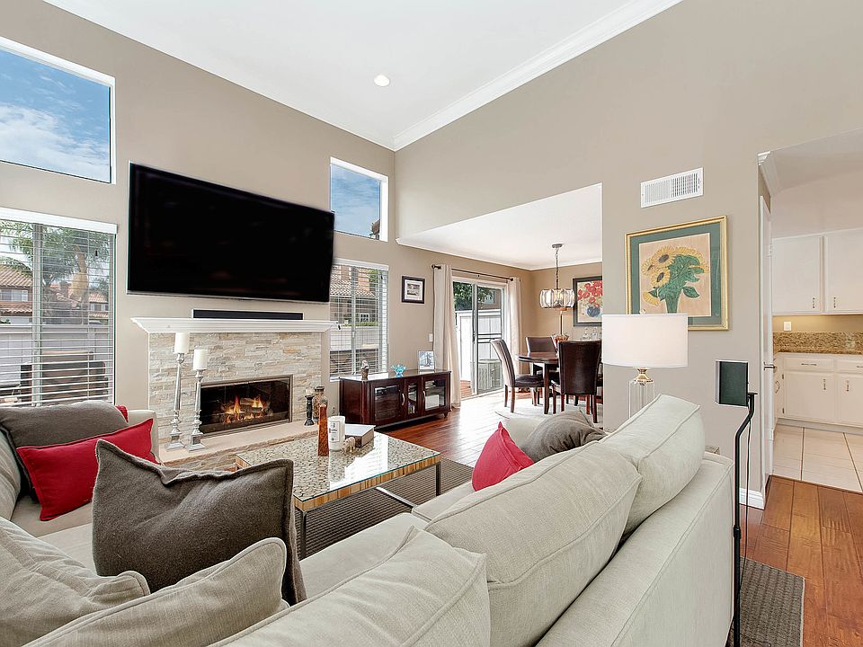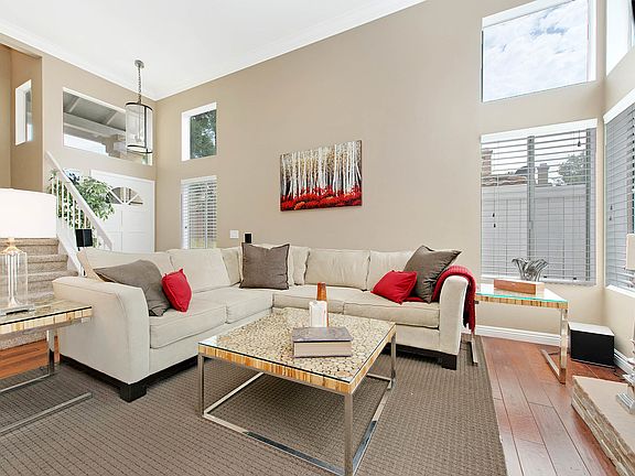 This Meticulously cared for Gem in Emerald Pointe is ready for you to call it home! An exceptional End Unit location that backs to a beautiful greenbelt, you'll be hard pressed to find another of it's kind. Your new home is move in ready. You will love the sophisticated touch of the over sized crown molding, granite countertops, walk in pantry, hardwood flooring and matching stainless steel appliances. Enjoy your morning coffee at the breakfast bar. At night you can relax by the stacked stone fireplace and mantel with friends and family. A downstairs powder room conveniently available. You will certainly appreciate the dedicated laundry room. The master suite comes with 2 closets! Pamper yourself in the roman soaking tub and a dual vanity sink in Master bath. Don't forget the considerable patio to enjoy with loved ones while you enjoy this quiet and tranquil neighborhood. This wonderful community has 2 pools and Jacuzzis, one of the lowest association dues in South Orange County, along with resident access to Lake Mission Viejo, Also just minutes away from award-winning schools, high end shopping, freeways and toll roads, and so much more amenities than you could imagine.
