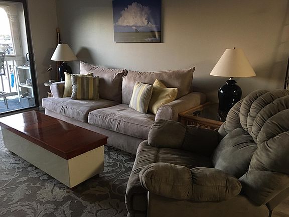 Waterfront property, month-to-month rental optional. Nicely furnished unit located in the heart of Orange Beach next door to the Mobile Big Game Fishing Club and Orange Beach Marina. Walking distance to a local popular restaurant. Put your boat in the water on Cotton Bayou using the private boat launch on the property and you are just minutes away from family fun at the local islands or fishing in the Gulf. (no boat trailer parking on the property) The boat slips are first come first serve, but unavailable on major holidays. There is a fish cleaning station along with a large swimming pool with a covered gazebo and BBQ grills. Bring your bikes to hop on the sidewalks that take you to the beach or the back-country trails. Only a two-minute drive to the beautiful Gulf of Mexico and the sugary white sand beaches! The master bedroom has a full-size bed with a set of twin beds in the second bedroom. There is covered parking for two cars. All utilities are included with the exception of electricity. This is a non-smoking home. Two parking spaces are available under the condominium. This condo is on the second floor. Month-to-month leasing is available, ask about details. No sub-leasing.