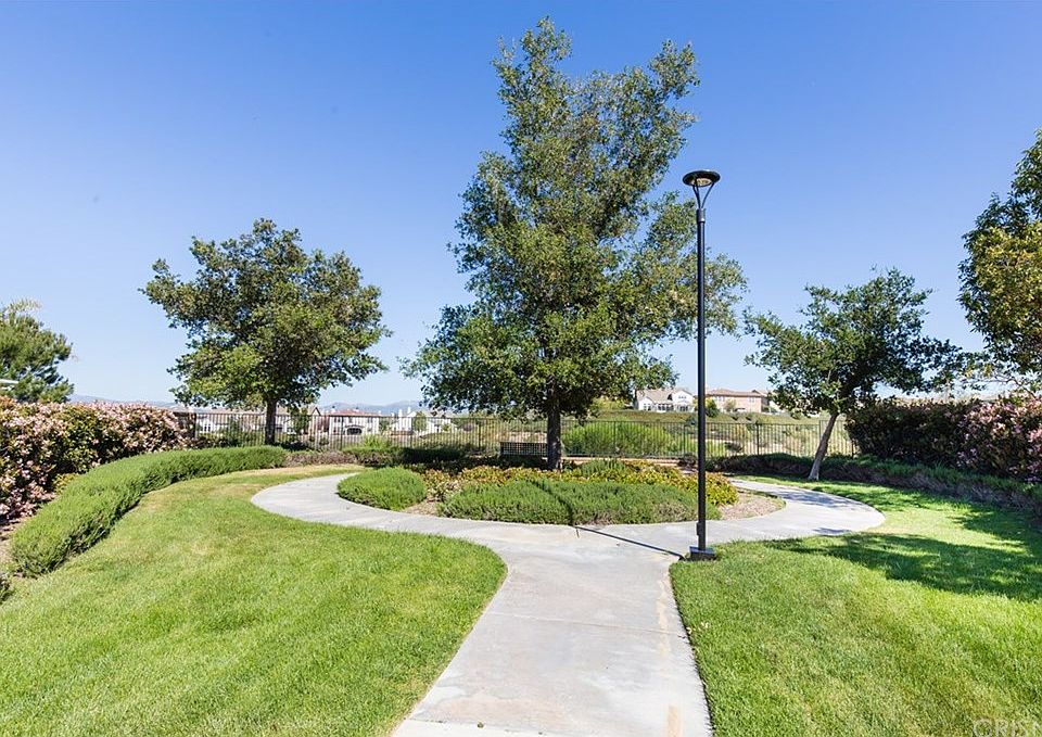 Golf Course View Home with Pool-Sized lot. Presenting a wonderful 6 bedroom, 5 bathroom home in the highly-sought-after Westridge Valencia community. With amazing panoramic views of the golf course and mountains, and close freeway access, this is the home you've been looking for! Located on a cul-de-sac street, this home has a well-maintained common area next door, which provides a buffer zone from the neighbors on that side. The entertainer's backyard features three covered patios with BBQ island, stamped concrete and stone pavements, pool-sized side yard, custom iron gates at front and patio entries, and many fruit and flower trees throughout. Inside, you'll find many upgrades, including quartz counters in the kitchen, Sub-Zero refrigerator, Thermador 6-burner gas stove with hood, new cabinet doors in kitchen and bathrooms, new water heater, trash compactor, and dishwasher, designer lighting throughout, newer flooring throughout, and partial new interior paint. The second floor master suite is amazing, with a large sitting area, plantation shutters, panoramic view, garden tub, walk-in shower, and double vanities. Also upstairs is a guest room with retreat and attached bath, two guest rooms that share a Jack and Jill bathroom, and several built-in book cases. On the main floor you'll find two guest bedrooms, two bathrooms, the laundry room, two work areas, family room with fireplace, and upgraded kitchen with breakfast bar island and nook. Welcome to your new home!