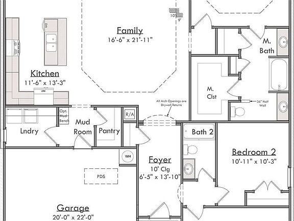 This is a great open floor plan! Featuring 3 bedrooms, 2 full baths, 2 car garage, trey ceilings in the family room. Master is separate from all other rooms for added privacy. Trey ceilings in Master bedroom, high counter tops, and spacious walk-in closet!