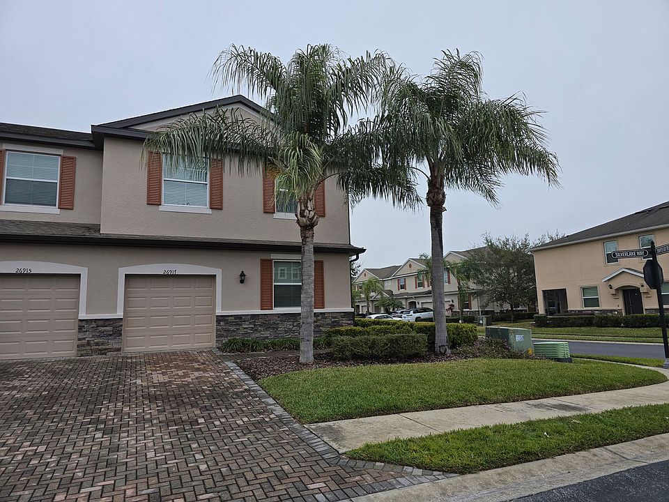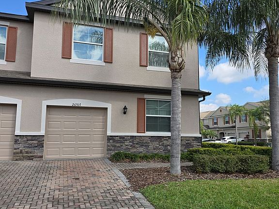 Live in style in the Lakeside luxury gated townhome community at Seven Oaks in Wesley Chapel, getting the best of two worlds: a modern 2-story end-unit townhome featuring 3 bedrooms, 2 baths, 1-car garage and private entrance, plus suburban living surrounded by nature in the 'best city' in Florida! (In a recent consumer affairs study that evaluated 50 of Florida's largest cities, Wesley Chapel was ranked as the number one place to live in Florida, earning high marks for its strong economy, exceptional education and healthcare systems, safety, and overall quality of life.) Once you step inside the foyer hallway, you will be charmed by the wall-to-wall ceramic-tiled open floor plan, highlighted by an open kitchen fully-equipped with stainless steel appliances, granite countertops, island with breakfast bar and dual sinks, plenty of cabinet space, pendant lighting and walk-in pantry. The kitchen opens to a large family room/great room, along with sliding doors that lead to a spacious screened-in lanai to relax and enjoy the yard view. Along with a nearby half-bath, there's also space on the first floor that can accommodate a den, an office or a formal dining room; the choice is yours. The stairway leads upstairs to an open loft area plus three brand new fully-carpeted spacious bedrooms, each with ceiling fan, large window to let in natural light, and closets. The master bedroom features a walk-in closet and ensuite bathroom with dual sinks, a large shower, granite counters, and tile flooring. A second full bath with tub shower combination and granite countertop with single sink is located nearby, along with a laundry room equipped with washer and dryer. Additional amenities include attached garage, water, and lawncare. While living here, take advantage of the many amenities offered in this community: numerous playgrounds, a resort-style pool with waterslides, Junior Olympic sized swimming pool, basketball courts, tennis courts, a soccer field, volleyball and an elegant clubhouse with a multi-tiered movie theater, group fitness room, gym and cafe. If you're into nature, don't miss the many parks located nearby, including the Seven Oaks Nature Trail, a Wesley Chapel nature preserve that's a relaxed, quiet place with a winding trail that takes you by ponds, parks, and playgrounds among other attractions. The location of Lakeside offers easy access to I-275, I-75, downtown Tampa, Tampa International Airport, shopping malls including The Shops at Wiregrass and Tampa Premium Outlets, restaurants, medical facilities and A+ rated schools. For convenient and luxury suburban living amid nature, don't miss this very desirable townhome! Contact us soon, before it's gone.