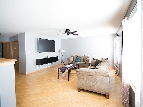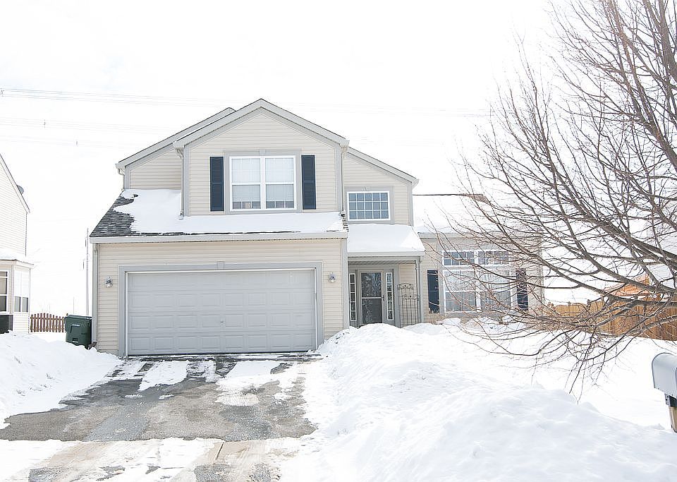 Walk into your nice two story entryway. Large home with 5 bedrooms and lots of closet space. Vaulted ceilings in both the living room and dining room. Fifth bedroom on main level is a great place for an office or play room. Two car attached garage. Full unfinished basement. Laundry room on main level. Cement patio out back. Amberleigh Estates neighborhood in Channahon. Minooka schools.