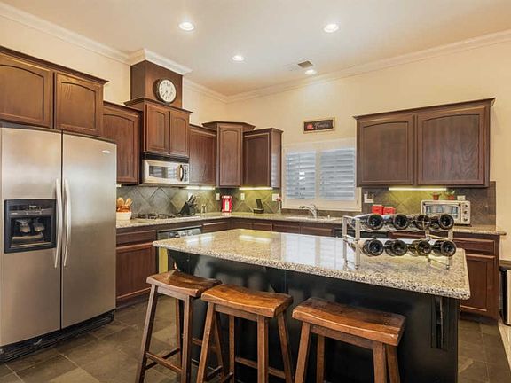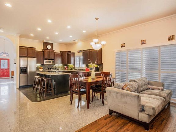 This former model home in the gated Bethel Estates Community has upgraded kitchen cabinets, granite counters, marble tile flooring in the entry and dining areas, plantation shutters, crown molding and an intercom system. In addition, the sellers have also done more remodeling and upgrades to this home within last several years, including upgraded laminate wood flooring in the living and family rooms, Italian porcelain back splash in the kitchen and bathrooms, slate tile flooring in the kitchen and porcelain tile flooring in the bathrooms. The master bath now has a gorgeous remodeled large walk-in shower with a mounted ceiling shower head, and the vanity has glass vessel sinks. The full guest bathroom's door was moved to the inside of one of the bedrooms to create a potential guest suite, and an electrical outlet was installed at the counter area next to the pantry to function as a coffee bar or potential computer station. Come see all this wonderful home has to offer!