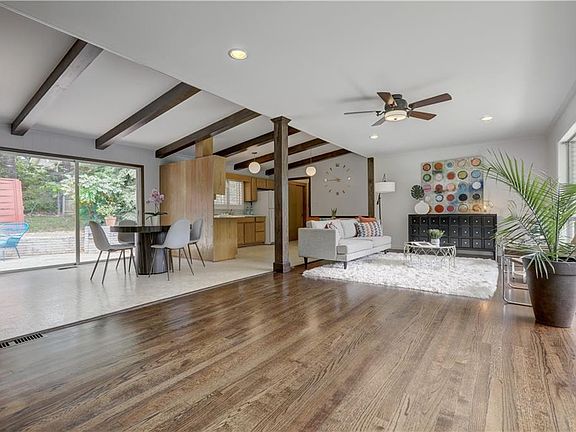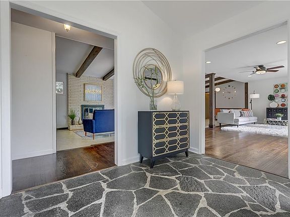 Mid-Century Modern Perfection! You'll love the soaring roof-line & striking street presence at top of the cul-de-sac. Stunning white brick exterior & stone lattice work carport. Dramatic vaulted wood beam ceiling w/ floor to ceiling windows. Rare original hanging light globes. Open floorplan w/ gorgeous hardwood floors. Intimate family room w/ fireplace & built-ins. Eat-in kitchen w/spacious separate laundry/mud room/pantry. Step out to private courtyard from Master Suite w/bathrm & walk-in closet. 2 additional bedrooms w/ good size closets. Oakgrove Elem/Lakeside High.