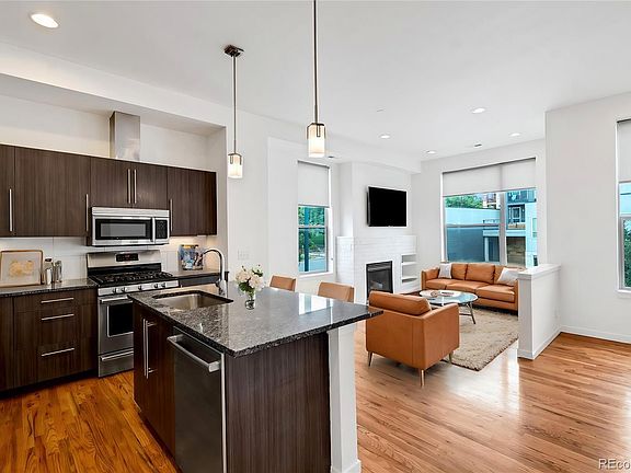 Recently appraised at $770k. Imagine morning coffee or planting fresh herbs and flowers on your spacious deck across from Jefferson Park! Contemporary townhome on corner lot in The Highlands. Complete new exterior & interior paint. Very large deck for entertaining with city and park views. Natural gas fireplace. Abundance of natural light. Immaculate with modern sleek finishes throughout. Enjoy gas range, high end appliances, washer, dryer, and Bali blinds included. 2-car attached garage with easy access from the entrance to community. Best location in community. Incredible 76 walk score to Empower Field (Bronco sports arena), Denver's best nightlife restaurants, and entertainment. Agent Owner.