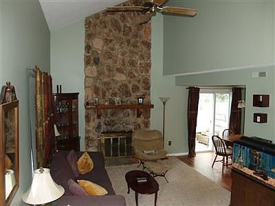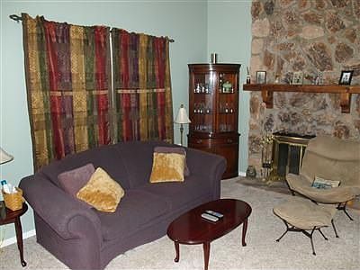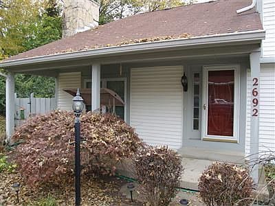 Sparkling 2 bedroom, 1.5 bath two story condo ideally located along a private tree line. This extensively updated unit boasts an open concept with a great room accented with a floor-to-ceiling stone fireplace and vaulted ceilings. Fully equipped kitchen adjoins a formal dining area. Enjoy the serenity of your covered porch and the private patio area with a paver extension! Upstairs offers 2 bedrooms and 2 accesses to full bath. Large master bedroom with a walk-in closet. Oversized garage provides ample storage! Recent updates include: dishwasher, carpet master bedroom, hall & stairs (2010): Pergo in kitchen & dining rooms, great room carpet, heat pump & furnace, interior paint in dining/great rooms (2008); new light fixtures except hall bath, carpet in small bedroom, patio pavers installed, commode in hall bath (2006-2007); installed energy efficient vinyl replacement windows, refrigerator & built-in microwave (2004-2005)! Easy access to shopping, Dayton Mall & I-75! Must see!!!