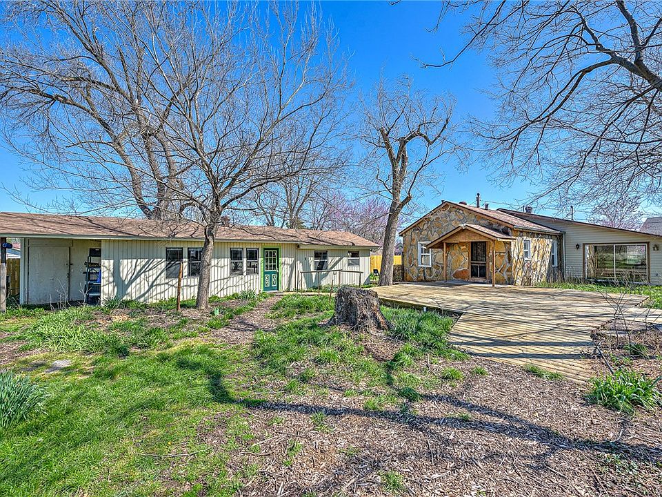 Stone home (giraffe house) on .40 acre. Well cared for 2 bedroom with lots of charm. Sellers leaving washing machine and fridge. Electric has been updated. Newer roof on both structures. Nice 560 sq ft studio behind home that could be converted into guest quarters. Studio also has 220 Outlets, storm celler with elect/air filtering system.Central air in both structures. Back up electric system if power goes out. Beautiful 24x24 back deck. The front and back yard is a floral paradise and the home has been a stop on the flower garden and nature society's garden tour. Razorback Greenway bike trail goes by the home. This property can be sold with the adjoining lots mls 1243010, 1243013, 1243015.