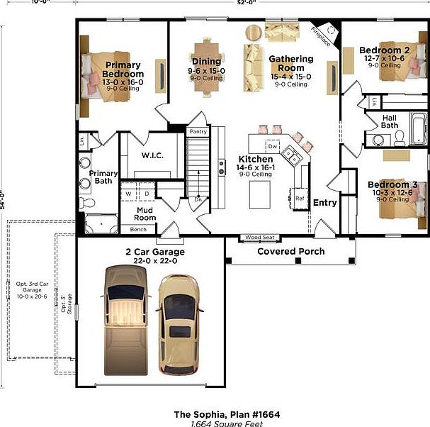 This open-concept home won't make you sacrifice social time during food prep. The kitchen features substantial cabinetry and counter space with a prep island. Dividing the kitchen from the main living area is a snack bar designed for casual meals and entertaining. An open dining area and gathering room offer plenty of shared living space. This home's primary bedroom features a large walk-in closet and a private bathroom with dual vanity and a five-foot shower. On the opposite side of the home are two comfortably sized secondary bedrooms and a hall bath. Finally, a mudroom connects the house and garage and features a closet and bench for shoes, jackets, and other everyday items.
