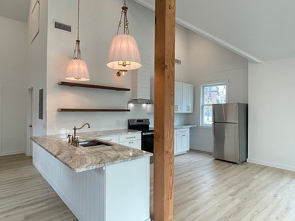 Experience unparalleled luxury in this massive one-bedroom, one-bathroom apartment, ideally located on Main Street in the Village of Wappingers. This expansive residence features a private balcony with serene views of a cascading waterfall, creating a tranquil oasis right at your doorstep. Inside, the home boasts cathedral ceilings that amplify its sense of space and grandeur. Designed with meticulous attention to detail, the apartment includes a striking floating staircase at the main entrance. The generously sized bedroom offers a retreat with double closets for ample storage, while the bathroom and kitchen are finished with elegant granite countertops. This luxurious apartment seamlessly combines modern design with exceptional comfort, offering an extraordinary living experience in a charming and sought-after village setting. Contact broker for more information. Broker fee applies. Owner is open to month-to-month lease or year lease. Apartment is spray foam insulated so very energy efficient. Tenant pays all own utilities. Pets OK on case by case basis with additional costs. Contact broker for more information. Broker fee applies.