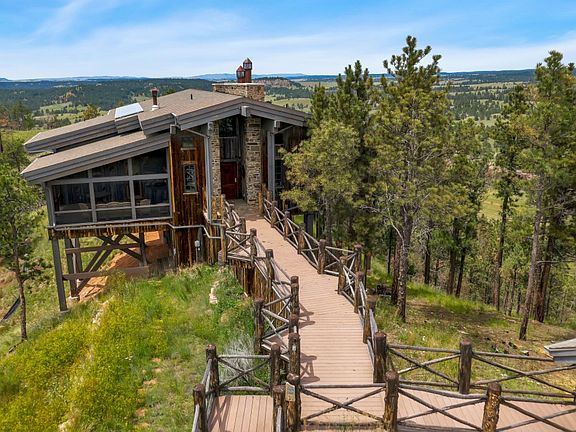 HEIRLOOM QUALITY Custom Designed home with Million Dollar Views! ONCE IN A LIFETIME OPPORTUNITY! This amazing Dick Knecht designed home brought to life by Scull construction was the first LEED home in Western SD! VIEWS OF A LIFETIME out every side of the home. Beautifully designed inside spaces cantilevered out over Orion?s Ridge and outdoor living areas for the ultimate in relaxing and enjoying the Beautiful Black Hills wide open skies. Breath the fresh air and know that there will only ever be 39 homesites in this exclusive 2700 acre Wilderness Preservation Community called Canyon Rim Ranch leaving plenty of commonly owned land to roam including the historic Red Canyon itself. Wonderful floor plan with open post and beam great room with floor to ceiling native stone hearth inside and outside housing a three sided fireplace. Windows galore for passive solar and views beyond compare any way you look. Sunken Kitchen for separate feel, but still open to the rest. Screened in porch feels like being in a tree house.:) Then, in true Dick Knecht form, you walk through a suspended window lined hallway to the amazing master suite complete with his and hers walk in closets, his and hers bathrooms, and a private balcony! There is also a studio room on the main level. The walkout basement has a wonderful window filled family room, private bedroom, bath and more outside covered decks. All this and a guest house, too! Plus 60 acres of owned land.