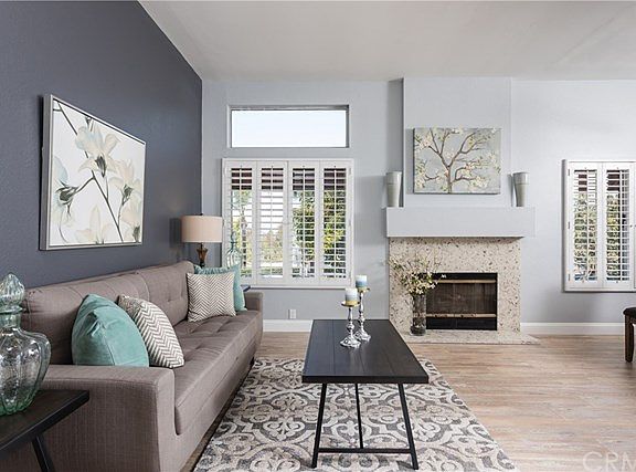 Beautiful upper unit carriage condo. Upgraded throughout. New kitchen with new cabinets, quartz counter tops, and new stainless steel appliances including refrigerator. New bathroom vanity. New upgraded laminate floors and upgraded baseboards throughout. LED lights throughout. 10' high ceilings. Freshly painted with designer paint colors throughout. Recently painted on the outside. Plantation shutters in living room. Fireplace with new quartz front. New wall plugs and switches. New bathroom fixtures. Washer & dryer included. The home is set up at a one bedroom plus a den with a one car garage. Association offers pool, and spa. Member of Lake Mission Viejo.