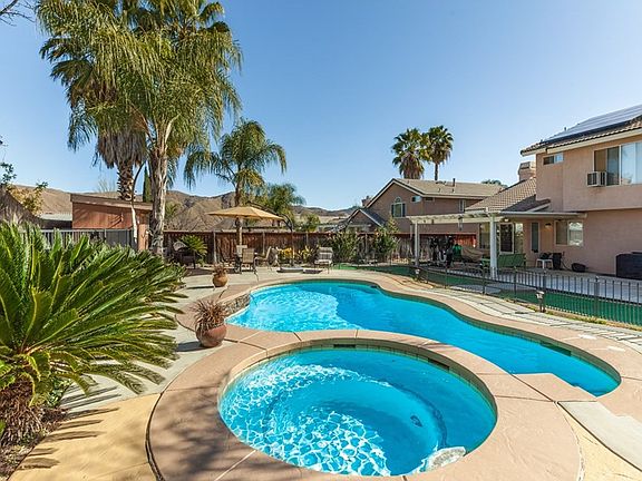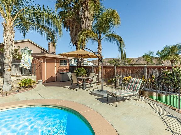 Swimming Pool Home in Horsethief Canyon!! 1320 Sq/Ft of Living Space , 3 Bedrooms, 2 1/2 Baths, Laminate Wood Floors, Ceiling Fan, Spacious Living Room has Dual-Sided Fireplace and Vaulted Ceiling, Whole House Fan, Rod Iron Staircase, Bright Kitchen, White Cabinets, Microwave, Breakfast Nook... Great Backyard for Entertaining, Ledger Stone Swimming Pool, Spa, Sheer Descents,Mountain Views, Lattice Patio Cover, Tropical Landscaping, Variable Speed Pump, 2 Car Garage w/Roll Up Door, 6970 Sq/Ft Lot, Water Softener and 2 Storage Sheds... Horsethief Canyon has an Elementary School (Luiseno Elementary) Soccer, Baseball Fields in the Community. There are also Tennis Courts, Beach Volleyball Court, Club House, Gym, Two Pools (1 Adult Pool) and Parks. Awesome Community to Live and No Mello-Roos, Only $58/Year Special Assessments!!! HOA is $85/Month. This Home Is Solar Powered Lease is Approx. $190/Month it will Save your Family Hundreds $$$ a Year!!! Great Home at a Great Price!!!