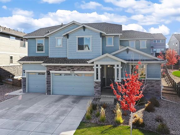 Exquisite Southshore home tucked away on a cul-de-sac with impeccable updates both inside & out! Natural light & space abound throughout the well-maintained interior & are accented by updated light fixtures, beautiful hardwood floors, modern recessed lighting & quartz & granite countertops. The open concept main floor is anchored by a well-appointed kitchen that delights with a gorgeous new subway tile backsplash, 2 huge walk-in pantries, a sizable island with seating & stainless steel appliances including a gas range & double ovens. Seamlessly transition to outdoor entertaining in the incredible backyard via a sliding glass door off the dining room that boasts oversized tiered concrete patios topped with pergolas, a sports court with a professional basketball hoop with a breakaway rim & shatterproof backboard, a firepit, & 8 Autumn Blaze Maple trees for added privacy. On the 2nd floor, each bedroom has en-suite access to a bathroom & a walk-in closet; 2 bedrooms share a Jack & Jill while the 2 suites have private bathrooms. The primary suite impresses with a large bedroom with a tray ceiling & a luxurious 5-piece bathroom. Finished in 2022, the basement provides 1,300+ sqft of additional living space including a conforming bedroom, stylish bathroom, dedicated home gym & a sprawling rec room complete with built-in cabinetry & a kitchenette that is pre-plumbed for a sink. Other noteworthy upgrades include a dedicated office with French doors, wired smart security cameras on the home's 4 corners, a radon mitigation system & a 3-car garage with high-end garage openers. Excellent location within the top-rated Cherry Creek School District with fantastic amenities including 2 pools, parks, trails, a fishing pond, a dog park, year round events & 2 community centers. Relish quick access to all 3 district schools, the Aurora Reservoir, the YMCA & all the shopping, entertainment & dining options found at Southlands.