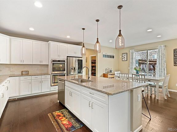 - Description: Hardwood Floor, Granite Countertops, Island With Seating, Subway Tile Backsplash, Stainless Steel Appliances, Gas Cooktop With Hood, Double Ovens, 2 Walk-In Pantries, Recessed Lighting, Open To The Dining Room & Living Room