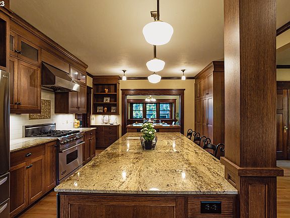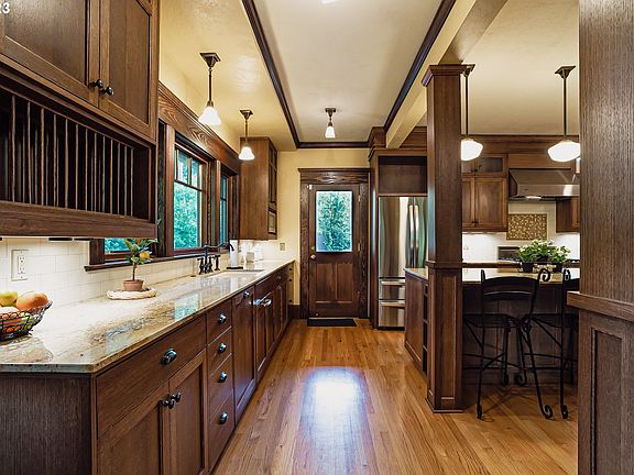 This meticulously restored and lovingly cared for historical craftsman home built in 1912 sitting on over 1.5 sunny, park-like acres will have you feeling like you're living on your own private estate in the city. 5 minutes from the University of Oregon, 0.1 mile from Laurel Hill Park. Edison Elementary + South Eugene High Schools.Completely new kitchen in 2010 offers granite countertops, large island, stainless appliances including Viking 6 burner gas range and double oven, and under cabinet lighting. Two fully remodeled bathrooms upstairs including a primary bath with a walk in shower. Craftsmen details throughout including original fir wood floors, built in hutch in dining room, and lots of other built in storage. Gas fireplace in living room. The large open bonus room in the daylight basement has a separate entrance and a bathroom. It could easily be a separate living area.Pull up through the large looping driveway with plenty of room for lots of cars to an oversized 4 car detached garage with a workshop area. Sun shines over the gently rolling lawn, fenced garden with raised beds, creek, and fire pit. Space and trees provide plenty of privacy.