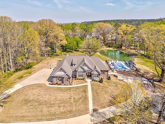 Nestled on 6 level acres, this extraordinary custom-built home is a true masterpiece of design and craftsmanship. You will be captivated by the many architectural highlights, including stunning barrel ceilings, intricate crown molding, and vaulted ceilings with exposed beams. The gourmet kitchen features custom cabinetry and walk-in pantry. Designed for both elegance and function, this home offers two luxurious master suites, craft room, and private office. The large finished basement adds even more versatility with an oversized storage room and a state-of-the-art safe room with a heavy-duty safe door. Enjoy outdoor living with a large, covered back porch with outdoor kitchen, pool, pool house and barn. This is more than just a home—it's a statement of luxury, comfort, and durability.