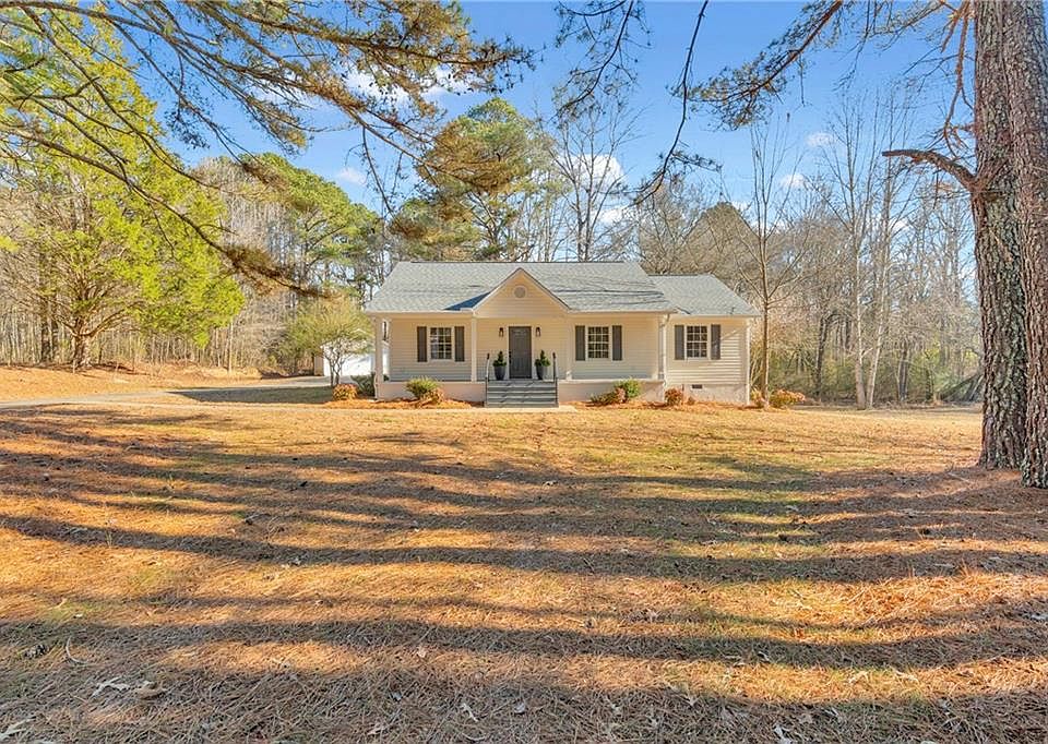 Tucked away on 2.4+- level, private acres in a highly desirable pocket of Paulding County, this sprawling, completely renovated, 3BR/2BA ranch delivers the rare combo everyone wants; peaceful space to breathe and easy access to highways, shopping, and schools. Built in 1998 and beautifully renovated from top to bottom, this home feels fresh, open, and move-in ready the moment you walk in. The floor plan has been thoughtfully improved with opened walls for better flow and livability. The entire interior shines with premium Sherwin-Williams paint on walls, ceilings, and trim. Throughout the home, you’ll love the clean, modern look of high-quality LVP flooring; durable, stylish, and perfect for everyday living. The heart of the home is the brand-new kitchen, featuring 42” cabinetry, quartz countertops, stainless steel appliances, and all-new lighting and plumbing fixtures. The new expansive island is a perfect workspace, ready for morning coffee, weeknight dinners, and weekend entertaining. The walk in pantry has new shelving and will hold everything that you can imagine. Both bathrooms have a crisp, modern feel with new vanities and toilets, resurfaced tubs, and new fixtures. The big-ticket updates are done too: new HVAC and thermostat, new and repaired supply lines, a new water heater, and plumbing and electrical system repairs/updates throughout. Even the small details are handled; new outlets, switches, covers, shelving, doors, and door hardware. Up top, there’s a brand-new architectural roof on both the home and the detached garage, plus new 6” gutters and downspouts on the home. Outside, enjoy the setting you’ve been looking for; private, level land with a refreshed outdoor living space. The deck has been repaired and completely resurfaced and the home pressure washed. All exterior surfaces have been painted, including windows, trim, front porch and entry steps. The expansive two car garage is bolstered by an oversized one car garage that’s a perfect workshop. It has a dedicated electrical service and additional expansion or storage space above. A covered area to the rear provides excellent protected outdoor storage. The grounds have been cleaned up and fresh pine straw installed in all flower beds. This is the place to bring all of the toys, plenty of room for everyone and everything. If you’ve been waiting for a renovated, affordable home on acreage with a convenient location that keeps you connected, this is the one!