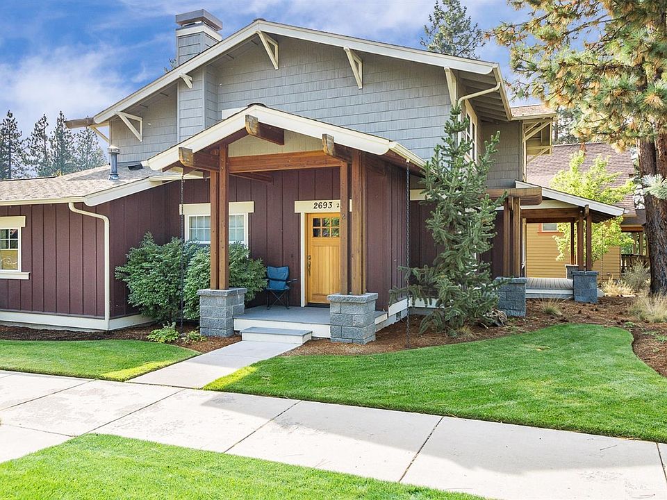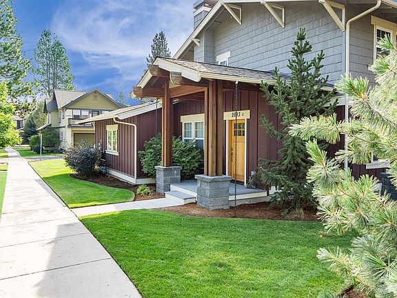 Rare Craftsman duplex in NorthWest Crossing. Identical 2-BR, 1.5-bath units on corner lot w/ entrances at right angles, each facing a different street. Great room with gas fireplace, slate surround, wood mantel. Hardwood floors in DR & kitchen, full tile backsplashes. Open view from kitchen to LR over pass-through divider. Each BR has its own vanity, shared toilet & tub/shower area. Covered front porches, single-car attached garages. Use one unit as vacation home while the other generates rental income.