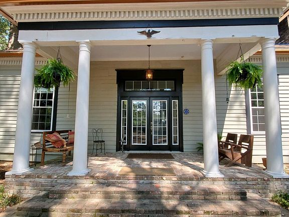 PRIVATE SETTING ON THE HILL-conveniently located 10 minutes from the cities of COLUMBUS or WEST POINT. This house boasts old world CHARM with modern amenities~COPPER gutters~large WINDOWS to enjoy the natural surroundings~open floorplan in the dining & GREAT room separated by massive WOODEN BEAMS~gorgeous refinished Heart Pine floors~completely renovated kitchen with MARBLE countertops & VIKING gas range~updated lighting, outlets and switches~gas log FIREPLACE~large bonus room upstairs with doors opening to a PRIVATE BALCONY overlooking the backyard that is surrounding by trees. This house has 4 bedrooms with an extra bunkbed room that has 4 built-in bunkbeds and a loft in the upstairs rec room that will hold another bed!