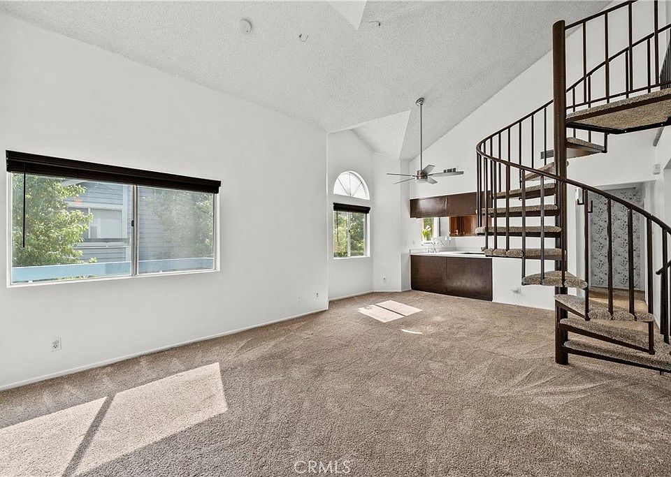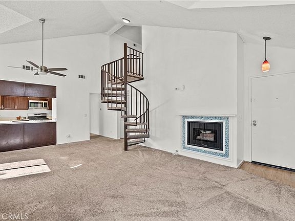Top floor 3-bedroom + upstairs Loft (currently set up as an office), 2 bath, townhome perched at the top level of American Beauty neighborhood with awesome views from the balcony. Freshly painted, the inviting open living room features newer carpet and a focal fireplace and seamlessly joins the open dining area. The kitchen with plenty of storage and counter space comes complete with new microwave, stainless steel appliances, 5-burner range, newer Bosch dishwasher, and refrigerator with built-in water dispenser. The primary bedroom with attached bathroom and secondary bedrooms have ceiling fans, and window blinds. The spiral staircase takes you up to the versatile loft which is set as an office but could be a 4th bedroom/playroom. For your convenience, there is a 3-months newer stackable washer/dryer (Wi-Fi enabled) inside the townhome and 2-car tandem garage with plenty of ceiling shelves and work-table. Park-like surroundings with community pool, tennis court, playground and guest parking. Conveniently located off Soledad Canyon between Golden Valley Road and Whites Canyon, nearby to public transportation, shopping center, restaurants, Costco and all the conveniences SCV has to offer.