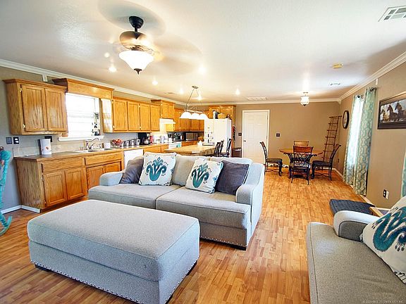 A Little Slice of Heaven Near Lake Tenkiller! This beautiful 1620 SF (per CH), 3 Bedroom, 2.5 Bath, 2 Car Garage home w/ 2 living areas sits on a .55 acre lot! The master is downstairs w/ spacious walk-in closet. The Open floorplan for living room, dining room & kitchen w/ island is filled with natural light, 1/2 bath below stairwell. Upstairs is the family room, 2 bedrooms & a full bath.