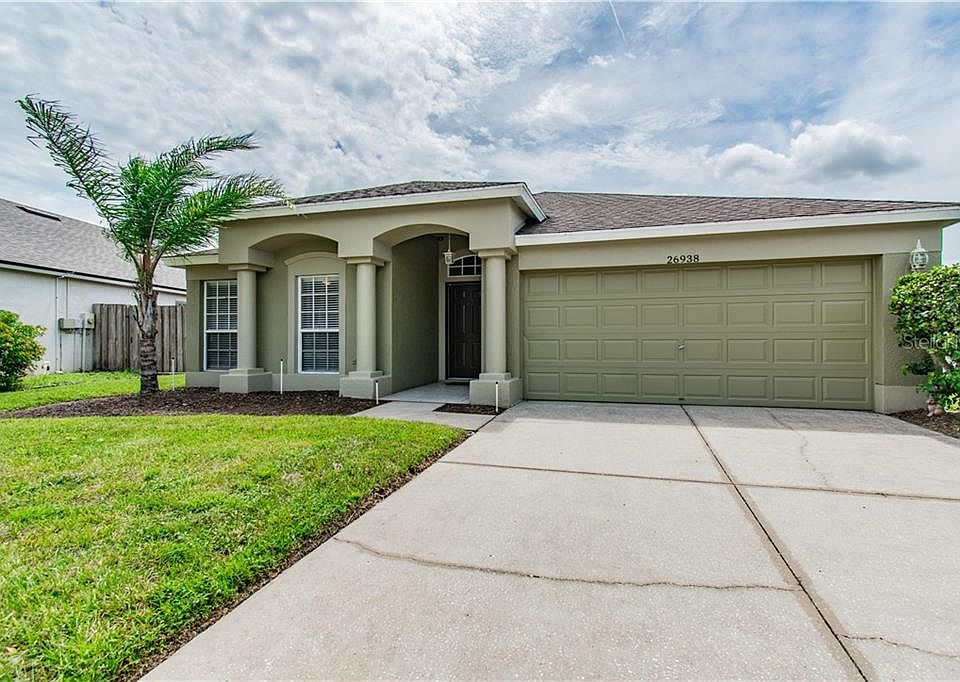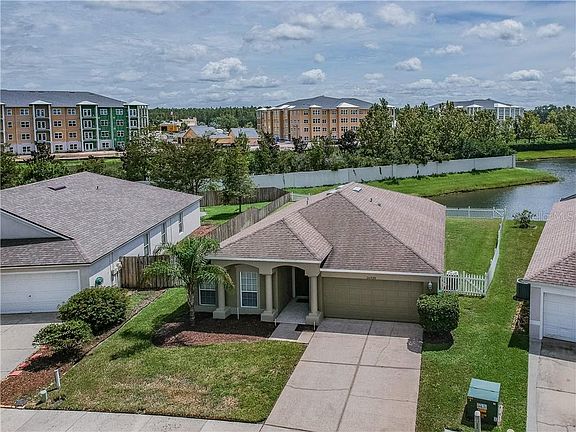 Situated in the highly desirable Lexington Oaks Golf Community, this well kept waterfront home awaits your personal touch. Through the front door and to the left are two bedrooms and a full bath. Down the hallway is the bright and airy family room. To the right is the formal dining room with a large picture window--eat your meals while enjoying the view! The kitchen features wood cabinets, solid surface countertops, white appliances, a closet pantry, and enough space for a dinette. There is a pass-through window that doubles as a breakfast bar. Tile flooring throughout the main living. The split floor plan allows for plenty of privacy with the master suite at the back of the home. The large master bedroom boasts decorative woodlike laminate flooring. The master bath boasts dual sinks with well-lit vanity, garden tub, and walk-in shower. Through the sliding glass doors off of the living room awaits your Florida oasis. A nice, oversized fully fenced in yard with a beautiful pond view, perfect for entertaining or just enjoying the peace and quiet. Warm, neutral paint inside (2017). Planter shelves throughout. New touches include ceiling fans, blinds, doorknobs, light fixtures. This home is picture perfect and waiting for you. Lexington Oaks is conveniently located near interstates, hospitals, schools, shopping, and restaurants. Community amenities include volleyball, basketball, tennis and soccer courts, day centers, walking trails, fitness center, heated pool, and new splash pad.