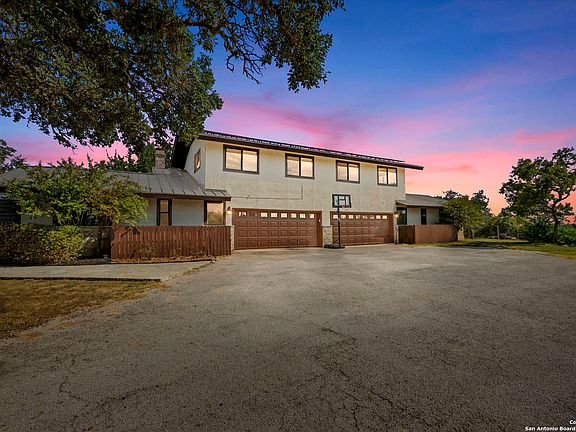 HILL COUNTRY RETREAT WITH PANORAMIC VIEWS, DUAL LIVING SPACES AND TINY HOME -- Perched on a private hilltop with absolutely breathtaking panoramic views, this 3,519 sq. ft. newly renovated stone and stucco duplex offers the perfect blend of privacy, versatility, and timeless Hill Country charm. Situated on 4.95 acres, this one-of-a-kind property is ideal for multigenerational living, guest accommodations, or income potential with two fully independent residences under one roof. UNIT A features two master suites, 2.5 baths, and a private 225 sq. ft. outdoor terrace. UNIT B offers one master suite, two additional bedrooms, 2.5 baths, and its own 225 sq. ft. outdoor terrace. Both residences welcome you with Saltillo-tiled entries that open into expansive living and dining areas, each anchored by a dramatic floor-to-ceiling rock fireplace. At the heart of each home lies a beautifully updated kitchen with custom soft-close cabinetry, high end countertops, designer lighting, and high-end finishes-perfect for everyday living or entertaining in style. Spacious master suites on both sides provide updated spa-inspired baths, private laundry closets, and direct access to sweeping Hill Country views. A screened-in 250 sq. ft. porch connects the two units and overlooks a sparkling pool and hot tub, creating a shared oasis for relaxation, fun, and entertaining. Enjoy quiet mornings, vibrant sunsets, abundant wildlife, and even Fiesta fireworks from the privacy of your own hilltop retreat. Energy efficiency comes built-in with a durable metal roof and 86 ION solar panels (installed in 2019). Adding even more versatility, a fully functional tiny home sits on the property-perfect for guests, extended family, a private office, or an income opportunity. Tucked away at the end of a private road, this residence provides the serenity of country living while being just 15 minutes from Downtown Boerne and Leon Springs, and only 20-30 minutes from San Antonio's modern conveniences. Whether you're gathering family under one roof, welcoming guests, or simply seeking a private Hill Country escape, this retreat offers a rare opportunity to experience Texas living at its finest. Award-winning Boerne School District, voluntary HOA fee of $400 for garbage, and NO city taxes!