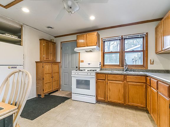 Price Reduced, seller just installed new kitchen floor! This 2 bdrm 1 bath home being sold as is features a large fenced in yard, patio, deck, fire pit, 2 car detached heated garage, with a new hot tub, New roof, well, furnace, water heater were installed in 2015. Center Lake private beach and clubhouse usage available thru optional association.