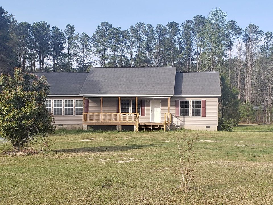 Gorgeous modular home sitting on 1.33 acres of land in Cameron! It has 3 bedrooms, 2 bathrooms, large family room, and kitchen. The home boasts hardwood floors in the living room that has a simple fireplace with views of the backyard. The kitchen has tile flooring with a island that has a breakfast bar. The four bay windows give you views of the front yard also providing natural lighting for the dining/kitchen combo. The master bedrooms has updated painting with a spacious master bathroom, The master bathroom has a large garden tub with separate shower, and double sinks. The 2 other bedrooms are large in size and have spacious closets. Enjoy hanging out with your family inside the home or on the beautiful front porch!