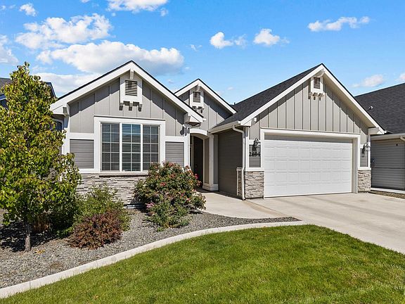 Convenience, community & craftsmanship! Situated minutes from I-84 - access to downtown Boise is only 17 mins away! Vibrant Meridian is built for business, designed for living! Enjoy all the Treasure Valley amenities with some mountain views! Shopping, dining, ski mountains, golf courses, ice rinks, speedways, parks, markets, wine tasting & more; including big name community friendly destinations; Top Golf, Roaring Springs & The Village nearby! Settle into this home with pride, built by Riverwood Homes (awesome Google reviews!). Low maintenance at its finest; wide hallways, open living/kitchen/eating, split floor plan, walk in closet, vinyl floors, neutral color scheme giving you the opportunity to make this home your own comfort zone. Clean & bright kitchen made to cook and gather! A hallway office niche centrally located for work/home convenience! The gas fireplace will keep you toasty when a chill is in the air + the covered patio out back has been known for a great place to unwind! Come live Meridian!