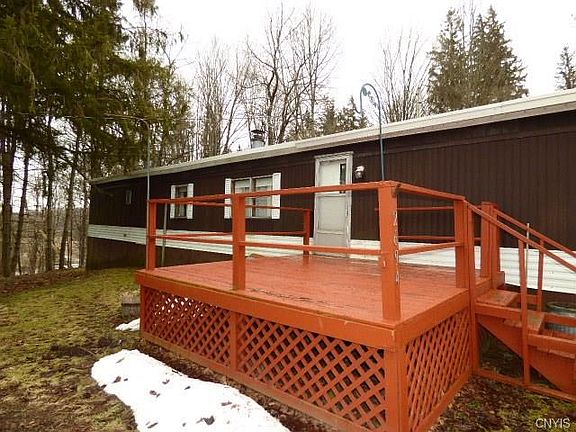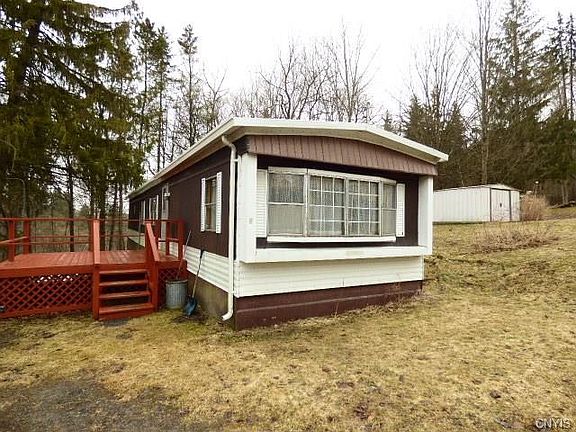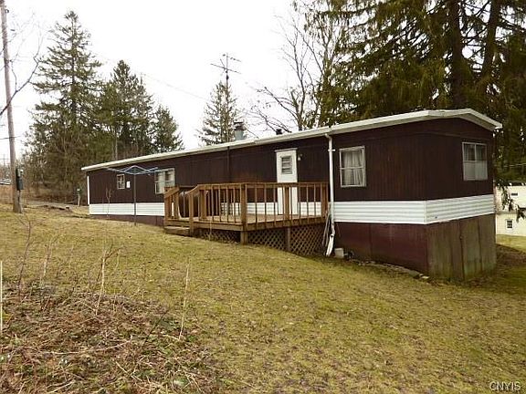 Sweet 840 sq.ft. single wide manufactured countryside home on pretty wooded lot in the Hamlet of West Eaton! Two bedrooms, 1 Bath, living room w/fireplace, spacious kitchen / Dining space ~ all on .53 acres w/storage shed. Two decks off front and back door to sit back and enjoy the quiet!