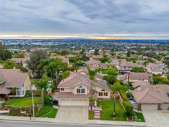 Incredible cul de sac location in the highly desired "Vista Royale" tract. This house has a premium view lot, with amazing views of evening sunsets, city lights, Disneyland fireworks and (when it's clear) Catalina Island. The home has been well taken care of with a backyard pool and spa that is just perfect for entertaining. You can just cozy up to your outside fire pit and built-in BBQ taking in the fresh air while enjoying the tropical atmosphere. The master bedroom has vaulted ceilings and large window that offers a very peaceful setting with a 180 degree view that is hard to come by at this price. There is also a downstairs bedroom that makes for an ideal office or perfect room for a live in. Ideally located near shopping and easy freeway access makes this a perfect home.