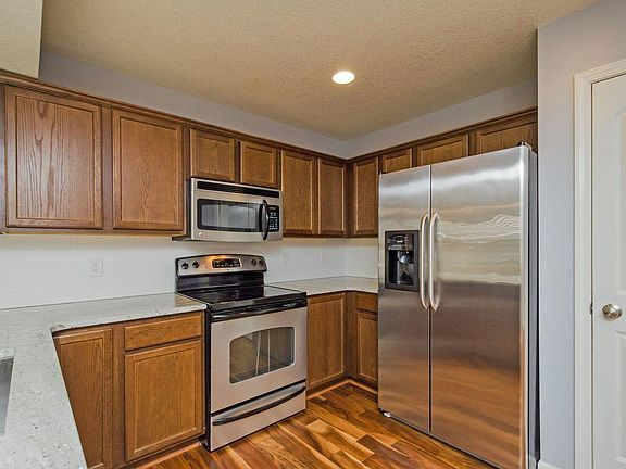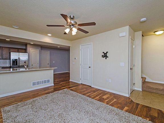 From your covered front porch you will enjoy the view of the 6 acre park across the street. Relax and enjoy your "Brownstones at the Legacy" townhome. Beautiful engineered hardwood floors throughout the main level accentuate this open floor plan. The kitchen offers a large peninsula with bar seating, granite countertops, a pantry and stainless steel appliances plus ample dining area. There is also a half bath conveniently located on the first floor. The upper level features a large master suite with a box ceiling, private bath and a walk-in closet. In addition, two nicely sized bedrooms, a full bath and a laundry room complete this level. The finished basement spotlights a large family room with an egress window. The association dues include free internet, access to the community center and its outdoor pool.