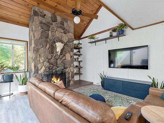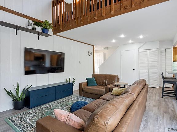 Spacious condo with private entrance off courtyard; light and bright, featuring an open floor plan, engineered hardwood flooring, vaulted ceilings and loft. Large living room with gas fireplace opens to stylish, updated, peninsula kitchen with stainless steel counters, 6 burner gas cooktop, ample cupboard and counter space. Slider opens to private patio. Large main floor bedroom and newly remodeled main floor full bath. Master bedroom in loft with updated en-suite full bath and private balcony. In unit laundry, washer & dryer included. Ample storage. 1 bay carport parking. Complex features clubhouse and pool, nearby golf course. Award winning Cherry Creek schools. Easy access to Cherry Creek Reservoir, parks and trails.