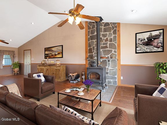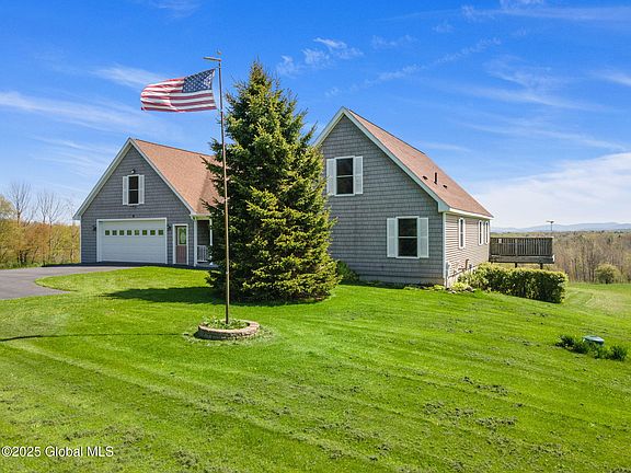 Welcome to your private retreat. This 2,571 sq ft, 3-bedroom, 3-bath chalet is nestled on 85 acres of serene, park-like grounds w/ panoramic views of the Catskill Mountains. Discover a spacious open-concept layout highlighted by cathedral ceilings, hardwood floors, and a convenient first-floor primary suite. The heart of the home flows onto a sweeping deck that overlooks a tranquil, five-acre stocked pond-perfect for fishing, paddleboarding, or simply soaking in the sunset. The second floor offers limitless potential, and is ready to be transformed into a bedroom or great room. Wander the expansive landscape grounds with a harmonious blend of hardwoods, apple trees, and evergreens, and explore ATV and hiking trails. Attached 4-car garage w/bonus room above. This is a must see!