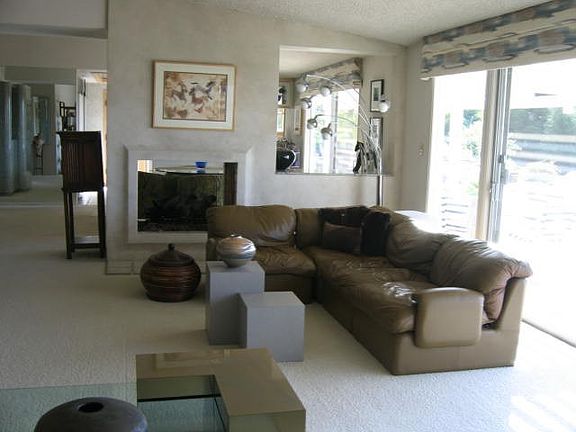 Beautiful updated home with wonderful views. Remodeled kitchen is complete with granite counters and high end appliances. There are two remodeled bathrooms and updated touches throughout. There is a central fireplace in the living area. Panoramic windows look out on the patio and view.