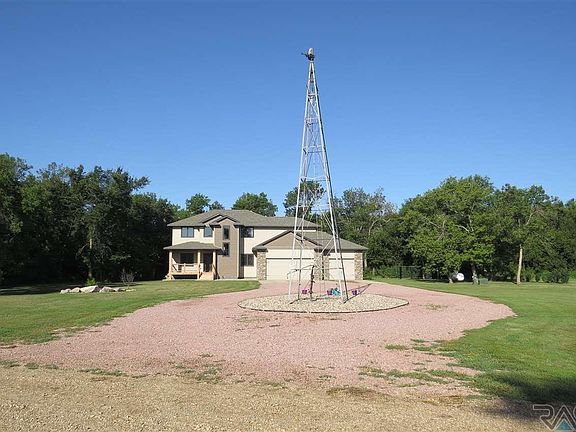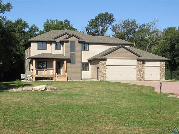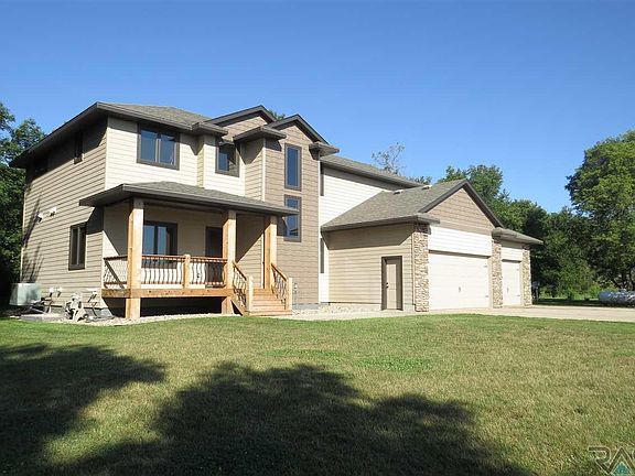 Builder's personal home built in 2011 on 5 acres of peace and quiet with 2 of those acres in trees! Only 20 minutes from Sioux Falls. All 4 bedrooms, 2 bathrooms, plus the laundry room are on the upper level. Main level has a beautiful knotty alder kitchen, hidden walk-in pantry, and a spacious eating area that open to a 14 x 16 covered deck. The 2 story living room opens to above. Office with large walk-in closet could serve as a main level bedroom. Mudroom and powder room complete the main level.