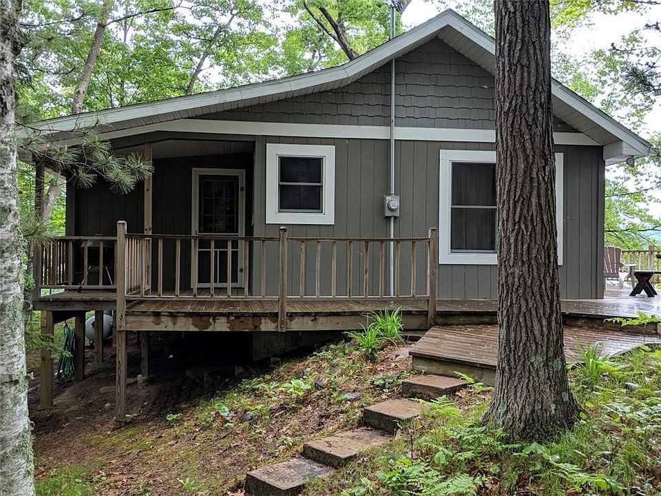 Charming 3 Bedroom Cabin on Gorgeous Peninsula Lot! Surrounded by water, there are Lake Views from every room. Level Frontage with Mature Trees and Sandy Shore. Knotty Pine interior, Fireplace and Large Outdoor space for entertaining or just enjoying the views. 2 Car Detached Garage with loft space to be finished for over flow guests or storage. One of a kind parcels. Fish, Ski, Swim and Enjoy the Lake Life!