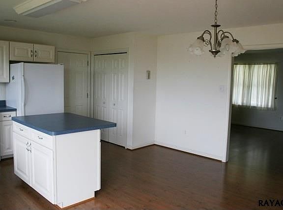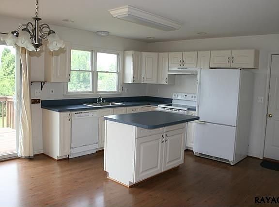 3 BR/2 Bath Rancher on 1 Acre Lot. One floor living w/ first floor laundry. White kitchen w/laminate floors, island, pantry, and all appliances included. Full basement with walk-out stairs and rough-in plumbing for bath. Attached 1 car garage, front porch and deck. Large block building with newer roof provides many opportunities.