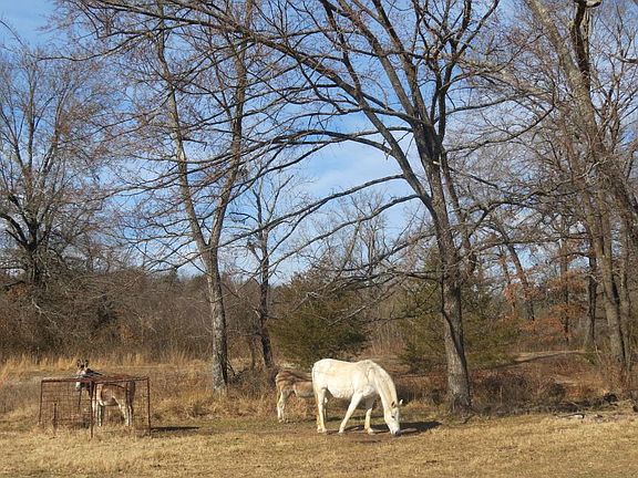 This one-in-a-kind property located in Wister, Latimer County, OK, is a unique combination property which has it all! You can explore 160 acres of prime mixed use property with 50% grazing pasture of Bahia and other native pasture grasses that produces 2 to 3 cuts per year at 100+ bales per cut. The remaining 50% of the property is a densely wooded recreational hunting paradise with scenic rocky mountain views. In the front yard are fruit trees that yield plenty of delights including pears, peaches, apples, persimmons, and mulberries. Included is a 1 bedroom, 1 bathroom generously spaced 1200 Sq. Ft. house built in 2008, constructed to keep the heat out and the hot summer sun away, with over-sized covered porches on three sides of the dwelling. The oversized bedroom is large enough to be split into two comfortable sized bedrooms. The kitchen is professionally outfitted with commercial grade appliances and sink, so this home is built to entertain or even could be converted into a mini-business with a variety of opportunities. Built for the hobby enthusiast, you won't have to go very far to tinker around in your workshop, because this space is conveniently connected to the back of the home. The shop has 2,400 Sq. Ft. which tells you what the priorities are in this home, including a built-in car lift, welding hookups, and even a convenient restroom to wash up after spending the day dabbling in this spacious area that any hobbyist would be glad to call their own. Follow the Yellow Brick Road toward the back of the property where you can stop and enjoy freshwater fishing in Long Creek which runs all year through the property, keeping those farm and forest critters naturally watered. The Creek feeds a 3-acre lake stocked with big mouth bass, perch, crappie, and catfish, where you can easily enjoy freshwater fishing or watch the ducks and geese meander along the slew ending at the large dock just behind the home. The one I call The Yellow-Brick Road is a historical raised road that provides all the gravel you'll need for your projects, and runs north/south on the property where the famous and historical Frisco and KCS Railroad once traveled. Filled with a variety of recreational hunting options, this is a property that won't disappoint your hunt. The densely wooded timber includes mature pines, white oak, red oak, and other local timber with panoramic rolling terrain opening to great views of the natural watering holes that provide an abundant and healthy food habitat for whitetail deer, Eastern wild turkey, hog, duck and other waterfowl, rabbit, squirrel, and even a bear or two. There are even convenient RV hook-ups for your guests that come to visit and enjoy the ATV trails, hiking trails, bird watching, and water sports on the river. The property uses well water, but rural water is available. Combined with the abundant natural water resources found in the creeks, lake, and ponds, all your critters will always be well watered. This property is strategically located with easy access on a paved road making it easy for UPS, FedEx, USPS, and even the local school bus to pick up and deliver. With the closeness of being just 1 hour from Ft. Smith, AR, 1.25 hours from Mena, AR, or 3 hours from McKinney, TX, it won't take you long to get to your getaway from the daily grind, and get back to nature! So go ahead, and drive on through the meticulously cared for front gate and make this ranch your home.