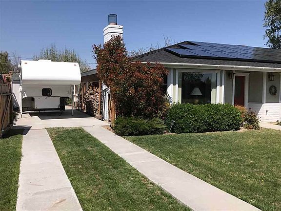 Pride of ownership is evident throughout this home located on a quiet street with beautiful mountain views. Spacious kitchen, dining and living area create a warm feel that flows out to the fully landscaped backyard with stream and pond, fruit trees and covered patio creating an amazing space for tranquil relaxation or entertainment. Numerous upgrades include 24-Panel 4800 Hundred Watt Solar System, African Mahogany Interior Doors, Crown Molding and baseboards and updated Laundry. Finished 'Man Cave' workshop with assembly table, utility sink and wood stove heat is approximately and not included in stated square footage. The RV storage area includes dump station that will accommodate up to approx. 40' RV/Trailer. Auto irrigation includes both sprinkler and drip systems and attached storage shed in the backyard will house your seasonal items. Numerous additional feature details available on request.
