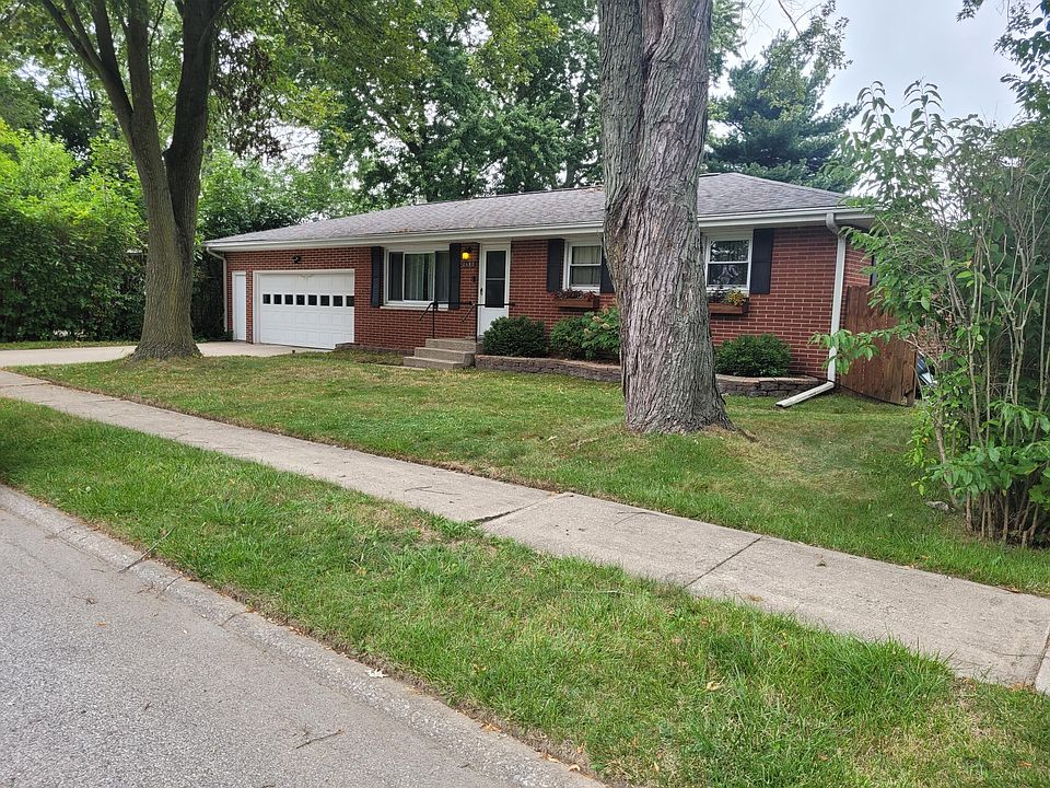 ALL Brick Ranch 3 bedrooms, 1.5 baths with walk-out basement. 2 car extra deep garage . Plenty of privacy, backs up to the Brennan Woods park. Newer roof and deck 2020. Lots of cabinets and counter space in this spacious country kitchen. Updated guest bath. Some original hardwood flooring. Basement has a work shop, finished room that could be used as office or rec room. Easy access to Rails to Trails And Expressway. Motivated Seller with possession DOC. Sellers are willing to have main level professionally painted (buyers choice of colors)
