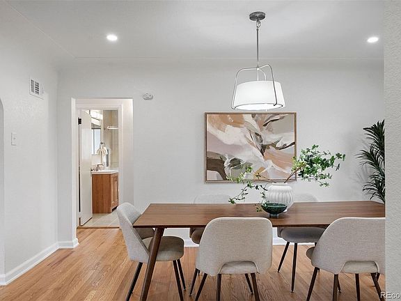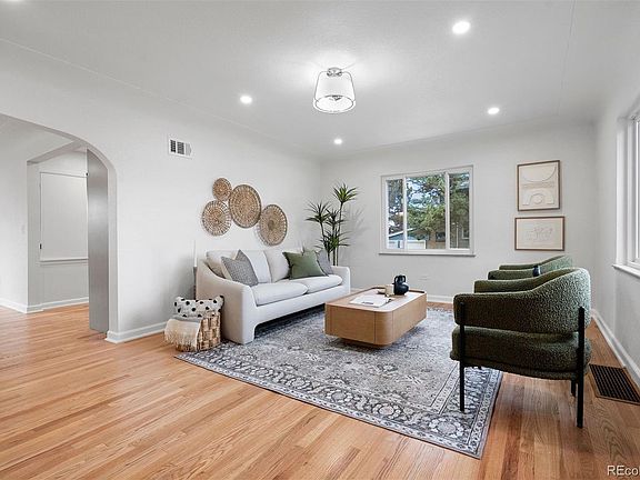 This seriously cute Park Hill home blends vintage character with fresh, modern updates—set on a sunny corner lot just blocks from some of the neighborhood’s most treasured local favorites. Thoughtfully renovated and truly move-in ready, this is the kind of home buyers wait for. Newly refinished hardwood floors run throughout the entire main level, complemented by coved ceilings, vintage period door knobs, recessed lighting, and huge windows that fill the home with natural light. The kitchen takes center stage, having just undergone a full remodel with brand-new Frigidaire stainless appliances including a five-burner gas range, new 42” cabinetry, granite countertops, and a classic original pantry. A cozy eat-in nook adds warmth and nostalgia while the open kitchen layout connects seamlessly to the oversized dining room, which easily seats six to eight for everyday living or entertaining. The family room is seriously spacious—designed for real life and today's sized furniture. Two generous main-floor bedrooms flank a full bath, including a rare primary bedroom that easily fits a king-sized bed and nightstands, plus offers a rare walk-in closet. Downstairs, the finished basement offers exceptional flexibility with a large second living area, great ceiling height, and a private third bedroom with its own ensuite bath and shower—perfect for guests or a quiet home office. A roomy laundry area includes washer/dryer +utility sink and built-in shelving. Outside, the corner lot shines with mature landscaping, a well-kept lawn, full privacy fencing, sprinklers, a gazebo, and even a dog door. A detached two-car garage rounds out this desirable property. Just two blocks from Trellis Wine Bar and Long Table Brewhouse, four blocks from Spinelli’s Market and Honey Hill, and close to City Park, the Denver Zoo, and the Park Hill Library—this location puts everyday favorites right within reach. Fresh, inviting, and full of personality this Park Hill gem is ready to welcome you home.